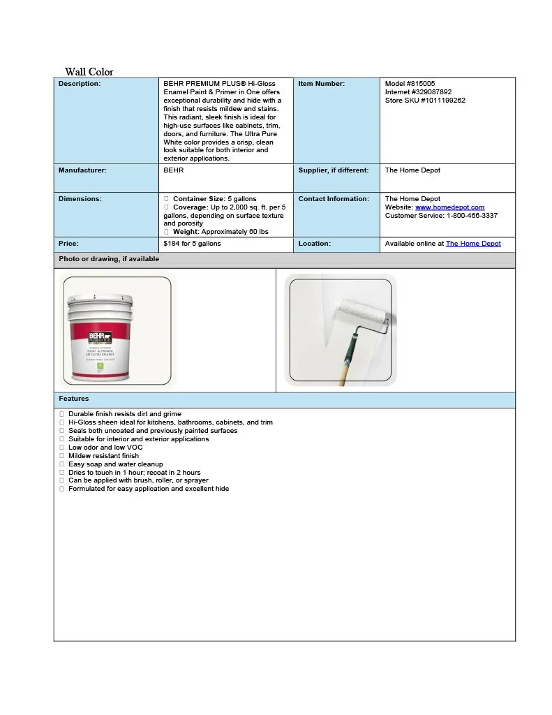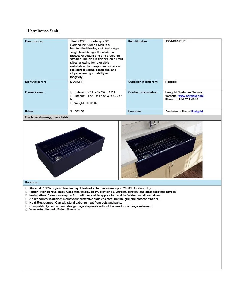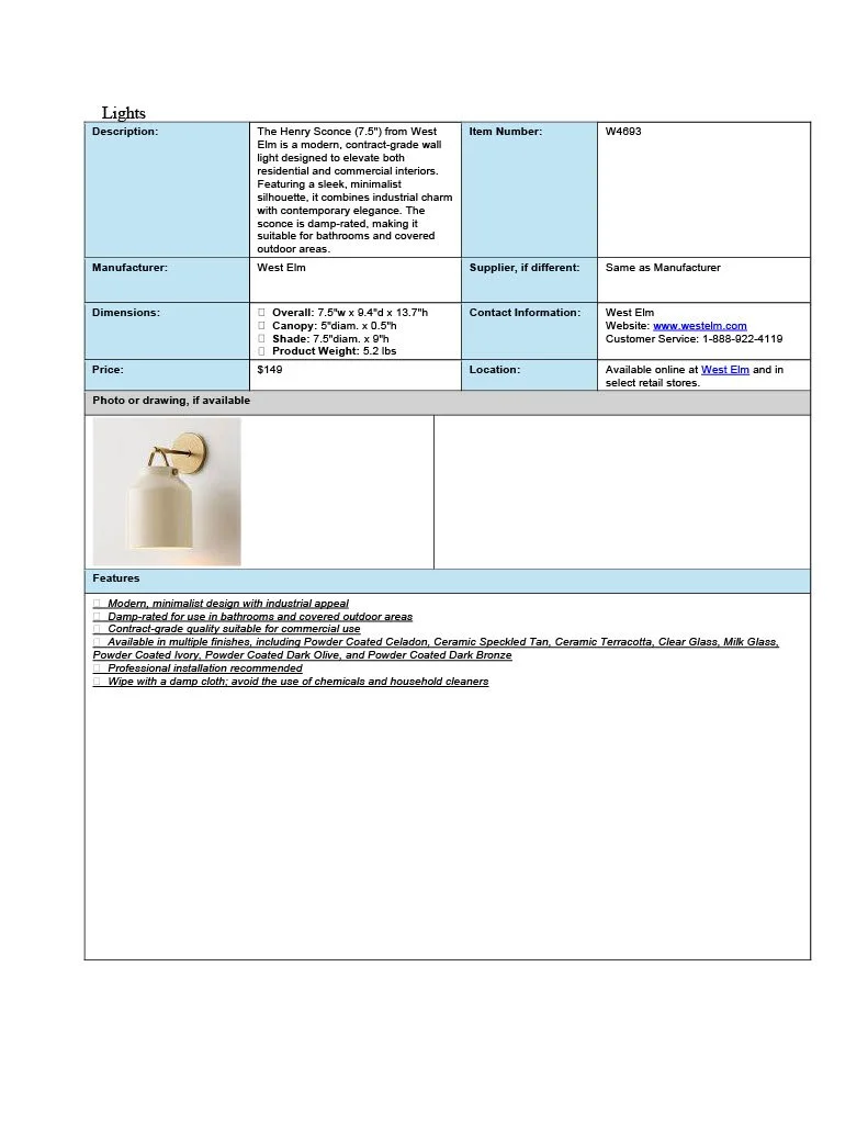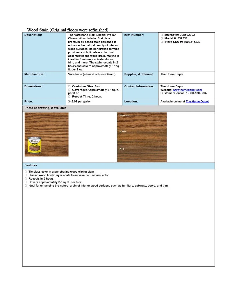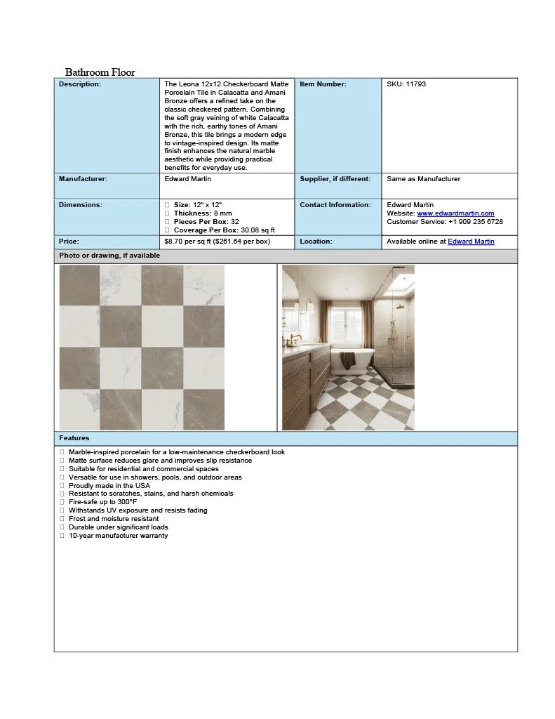 These spec sheets were built for residential designs as a student project.