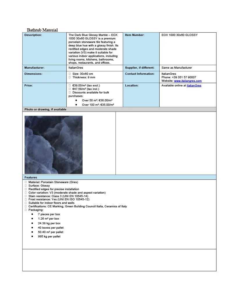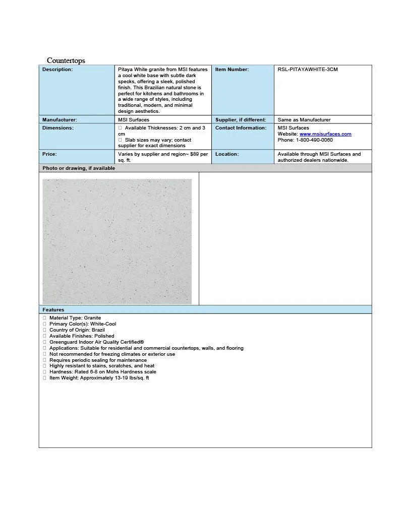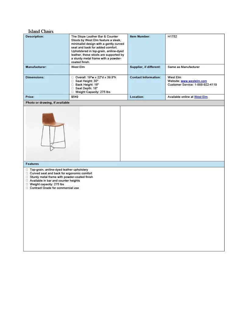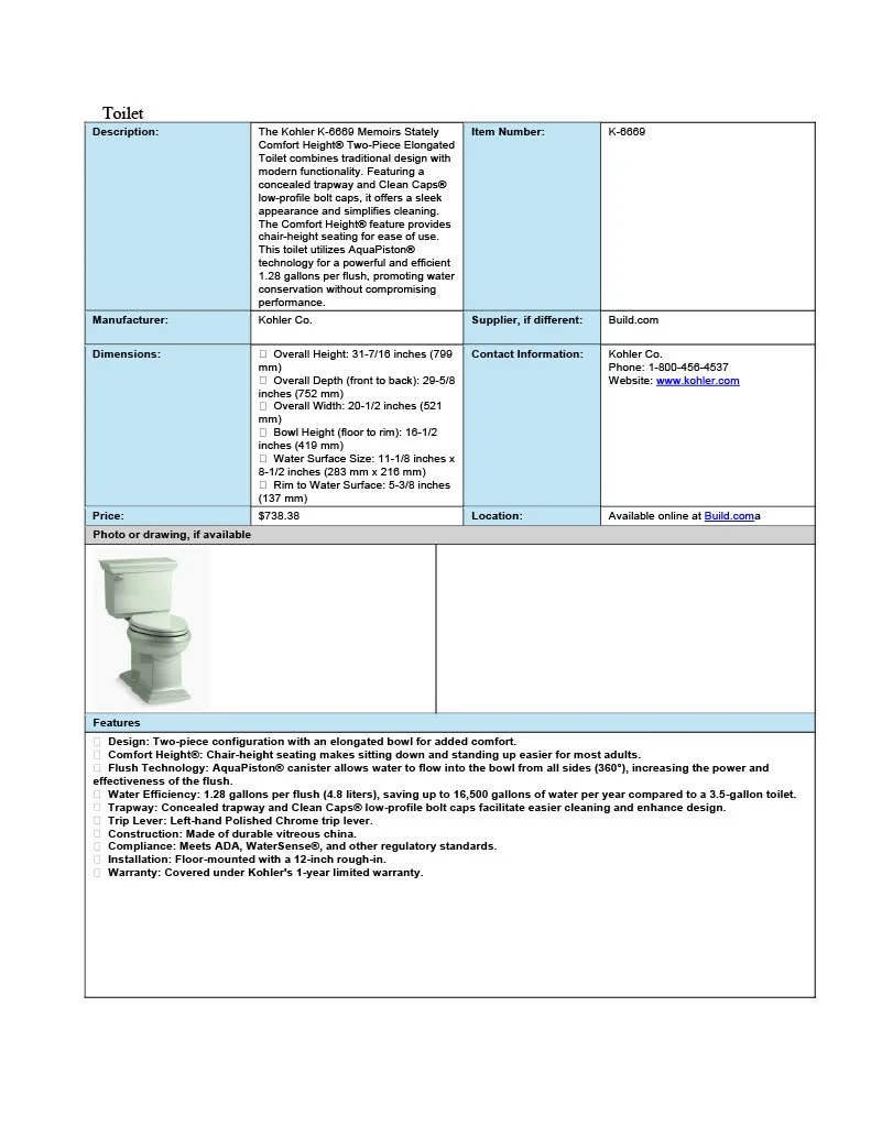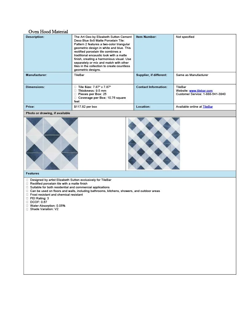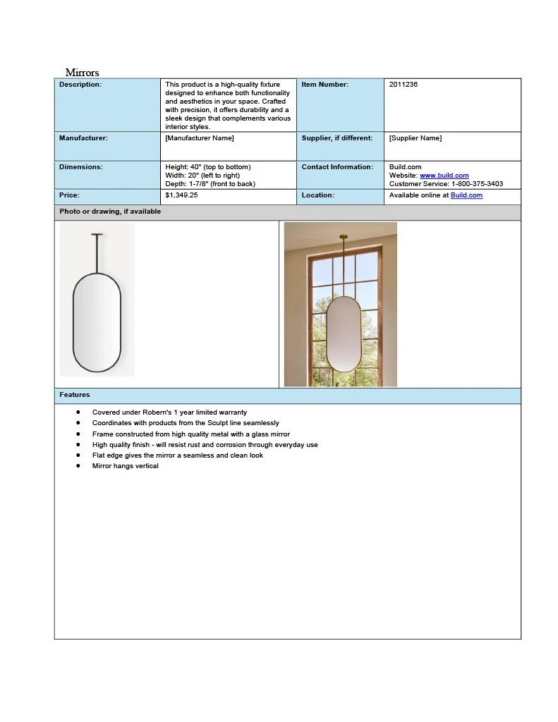 These spec sheets were built for residential designs as a student project.