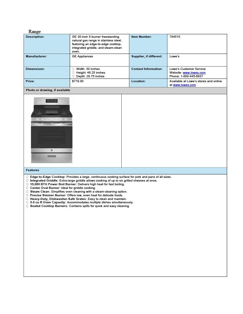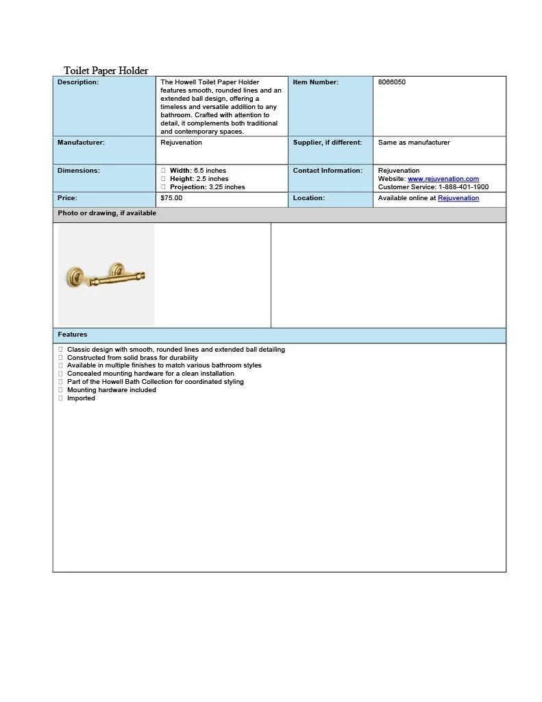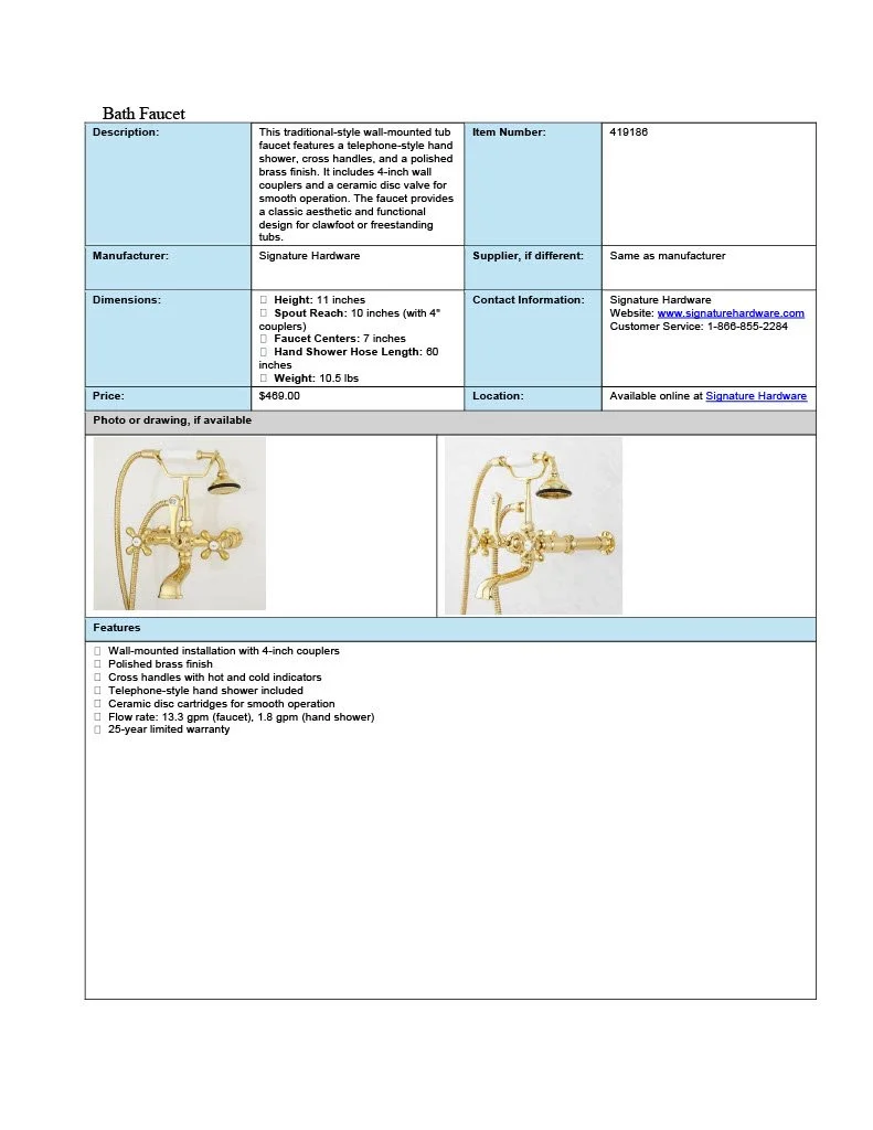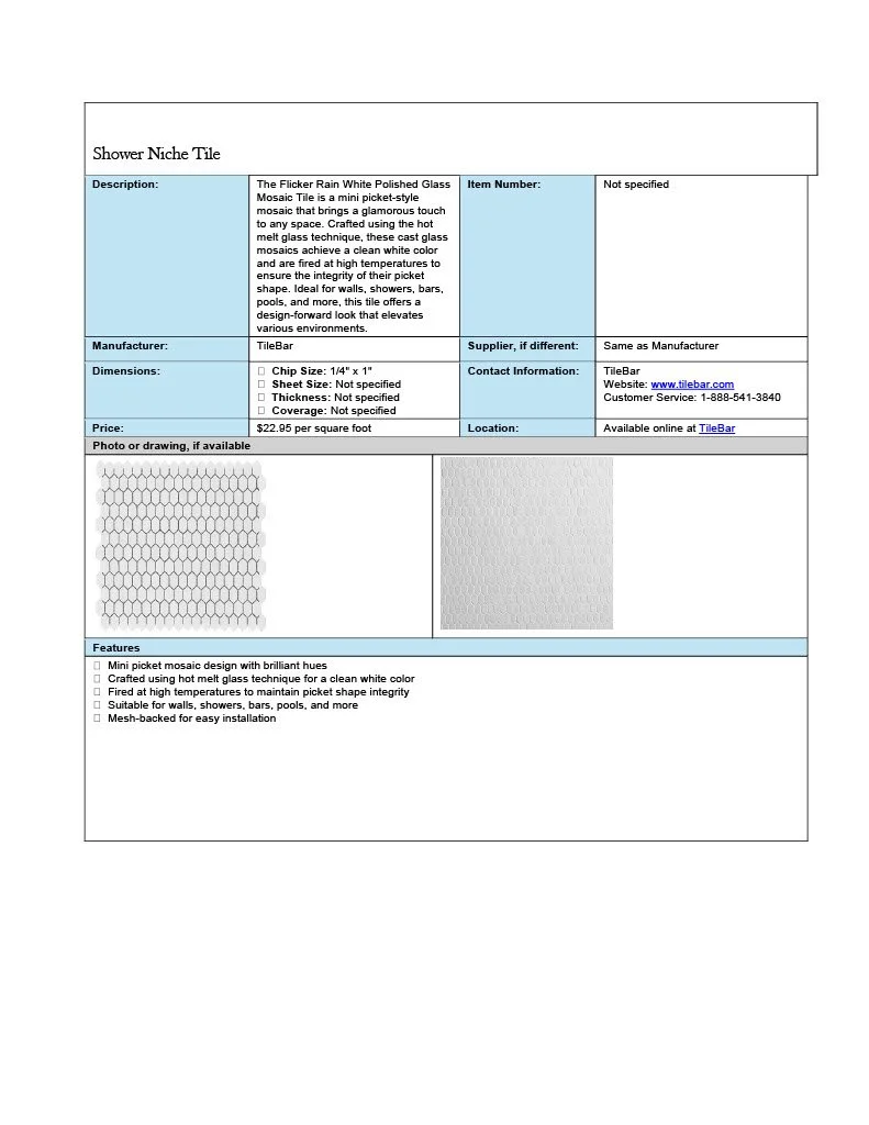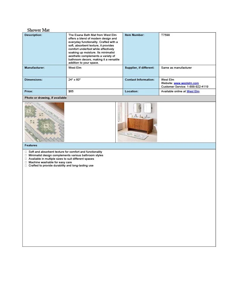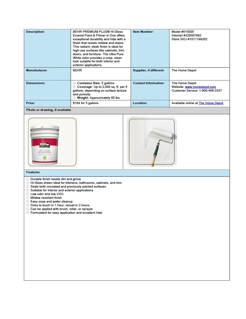 Spec Sheet Examples
